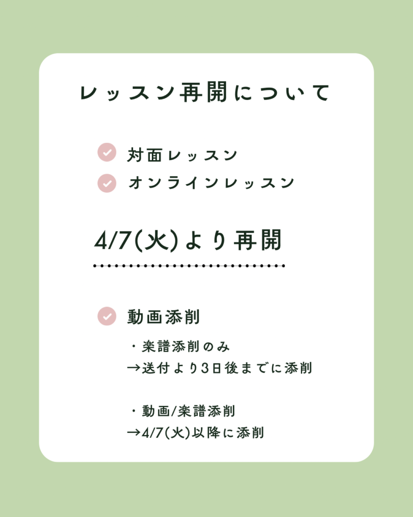 →4/7(火)よりレッスン再開