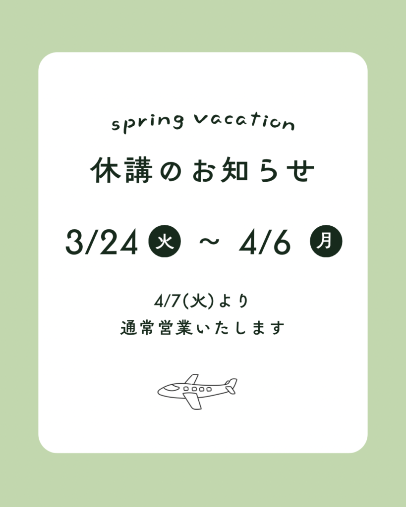 【3/24(火)〜4/6(月)】レッスン休講のお知らせ📢